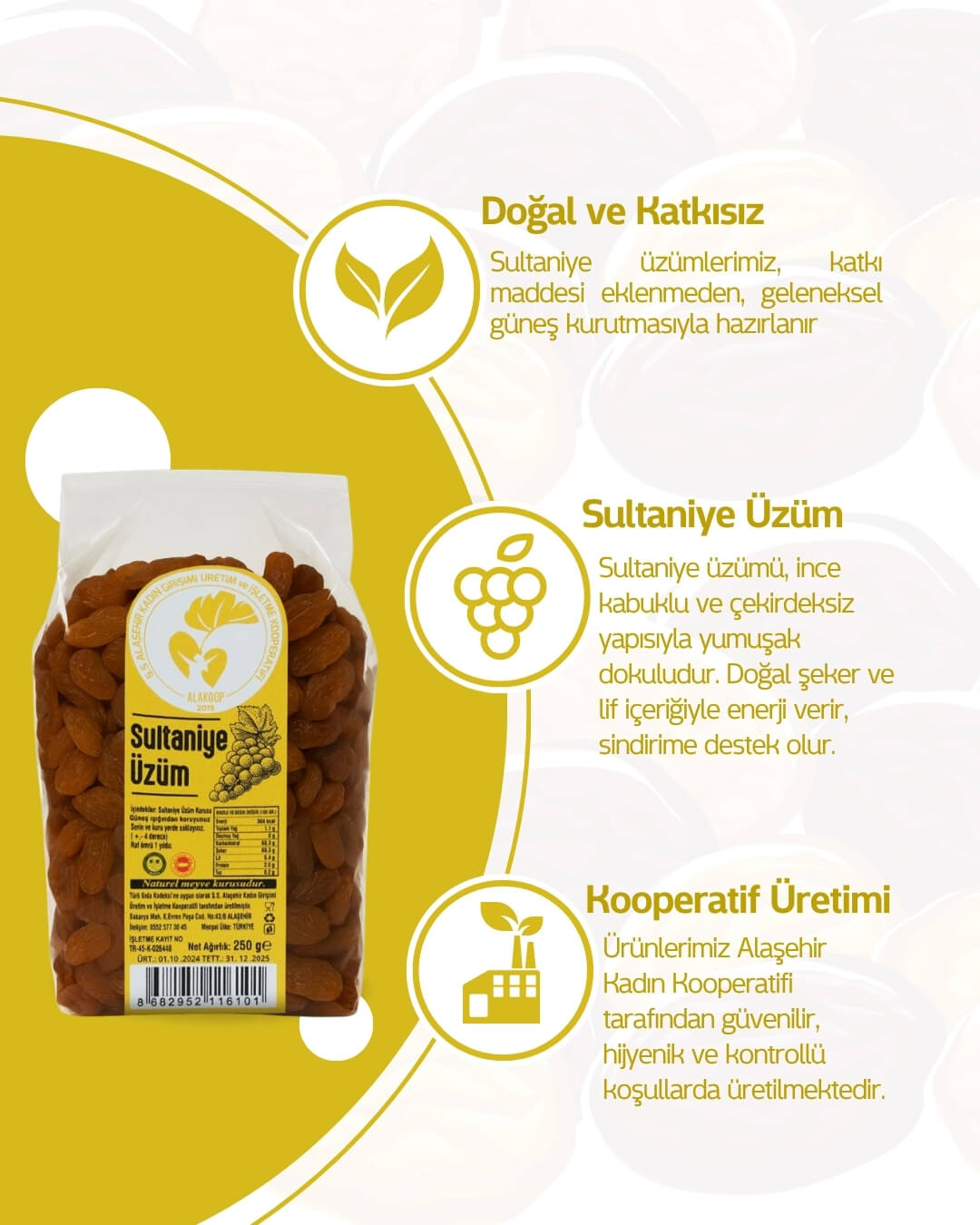 “250 Gr Sultaniye Kuru Üzüm” için yorum yapan ilk kişi siz olun Yanıtı iptal et
